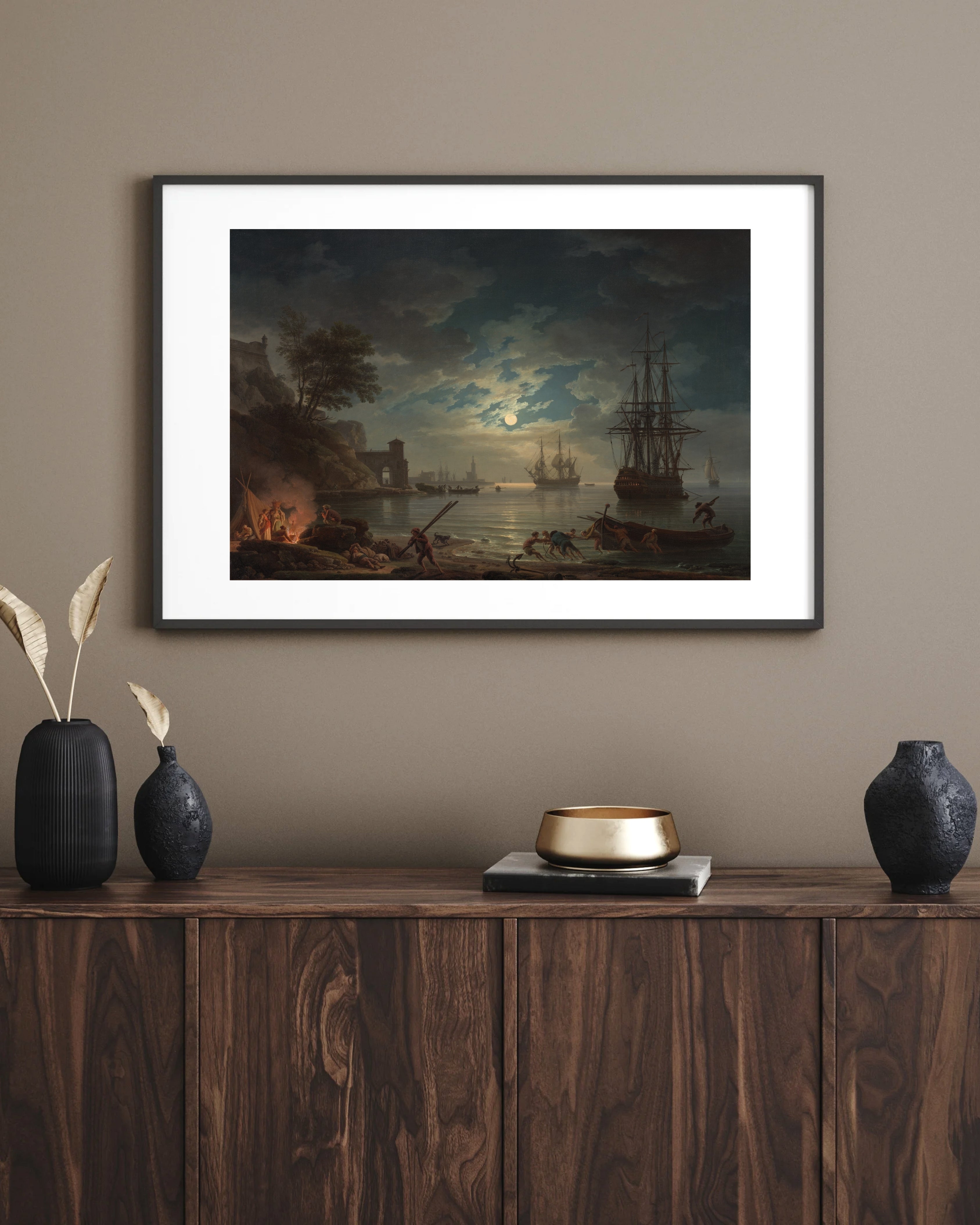 “Moonlight”, Vernet’nin hem doğayı hem de ışığın ruhunu anlatma konusundaki ustalığını yansıtan zarif ve etkileyici bir gece manzarasıdır.