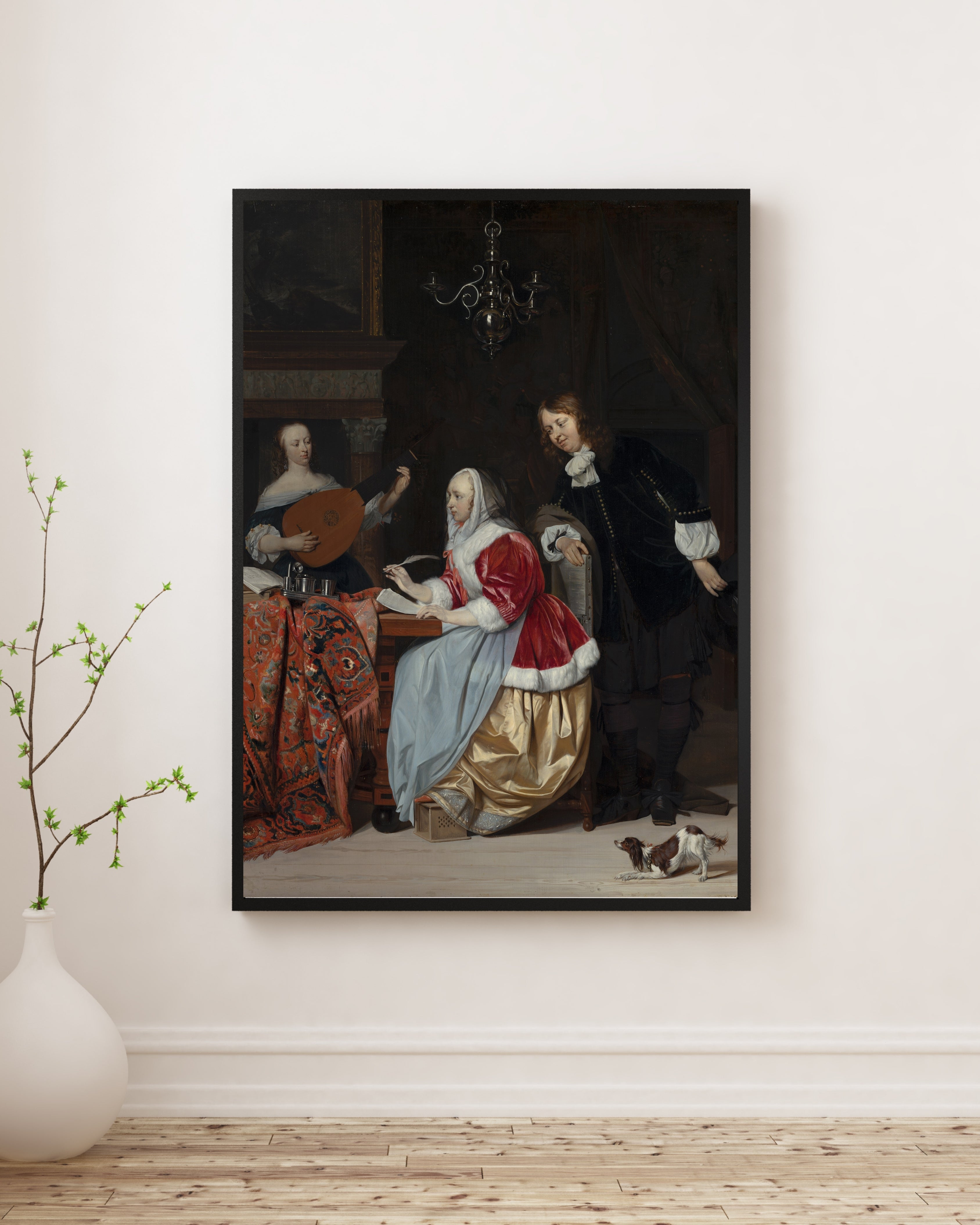 Gabriel Metsu (1629–1667), Hollanda Altın Çağı’nın en zarif ve duygusal janr ressamlarından biridir. Metsu’nun eserleri, Vermeer’in dinginliğini ve Frans van Mieris’in detay ustalığını birleştirir. Özellikle müzik, okuma ve aşk temalı sahneleriyle tanınır; bu sahnelerde ışık, sessizlik ve duygu olağanüstü bir incelikle işlenmiştir.