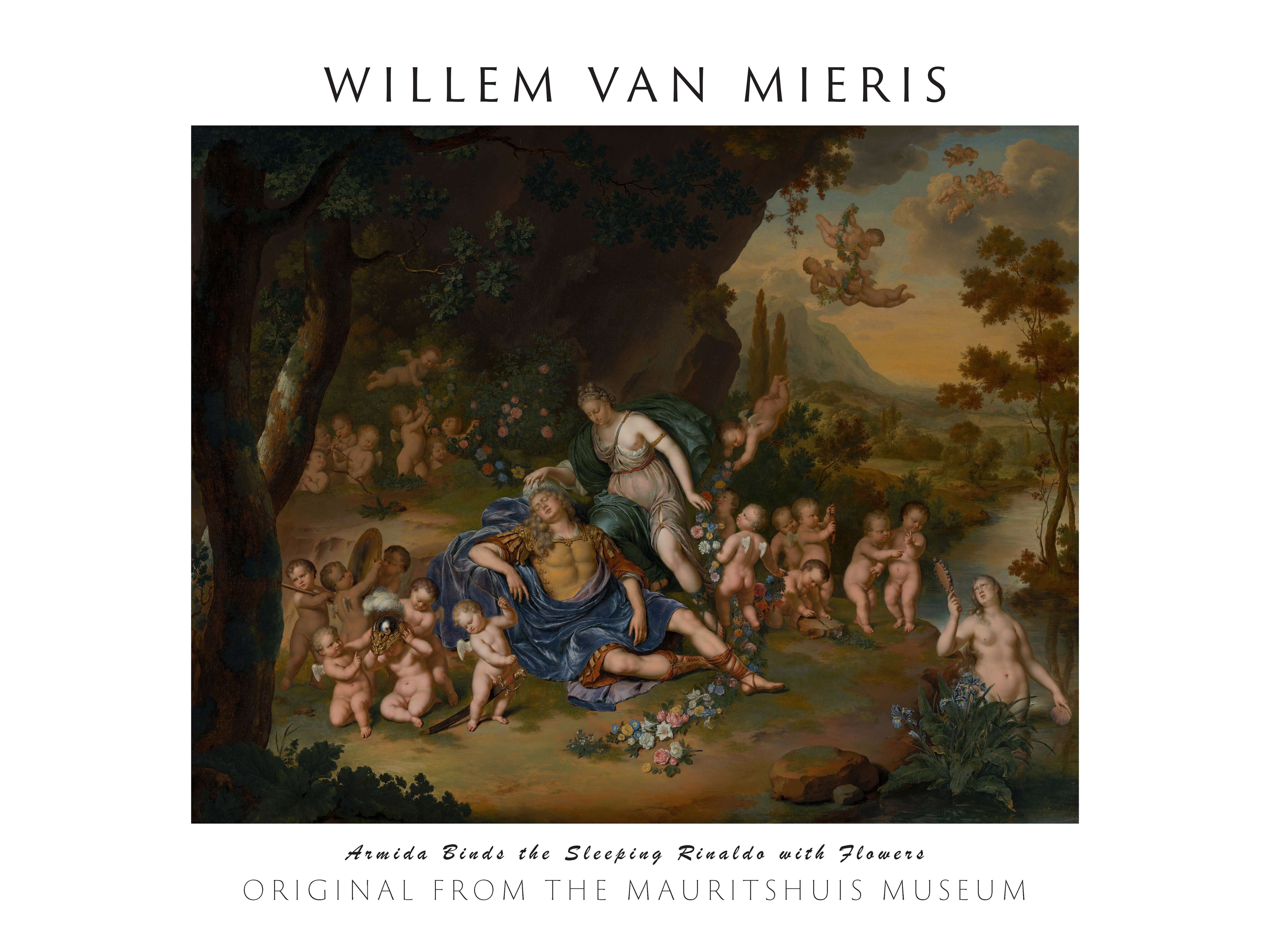 “Armida, Uyuyan Rinaldo’yu Çiçeklerle Bağlarken / Armida Binds the Sleeping Rinaldo with Flowers” (Armida bindt de slapende Rinaldo met bloemen) adlı tablo, Torquato Tasso’nun destansı şiiri “Gerusalemme Liberata” (Kurtarılmış Kudüs)’ten alınan bir sahneyi betimler. Bu hikâyede büyücü Armida, Hristiyan şövalye Rinaldo’ya âşık olur. Ancak onu büyülemek ve savaş yolundan alıkoymak için sihirli çiçeklerle bağlar.