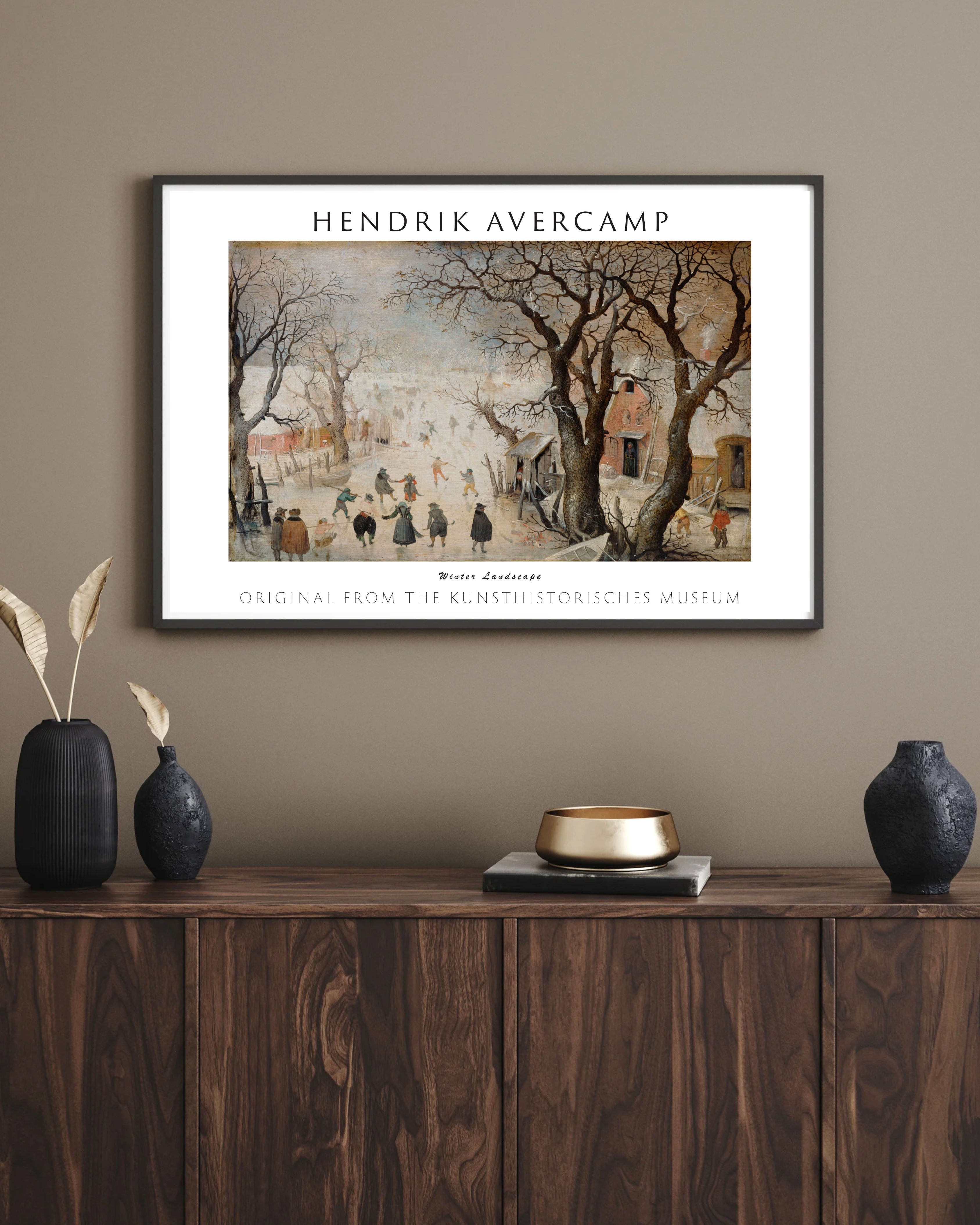 “Kış Manzarası / Winter Landscape” adlı eser, Hollanda’nın donmuş bir kış gününü canlı bir sahne düzeniyle betimler. Buz üzerinde kaykay yapan insanlar, köpekler, kızaklar ve uzakta dondurucu soğuğa rağmen devam eden yaşam, sanatçının gözlem gücünü gösterir. Kompozisyon, ön plandaki hareketli figürlerle derinlik kazanırken, uzaklardaki gri gökyüzü ve donmuş göl yüzeyi tabloya dingin bir ritim kazandırır.
