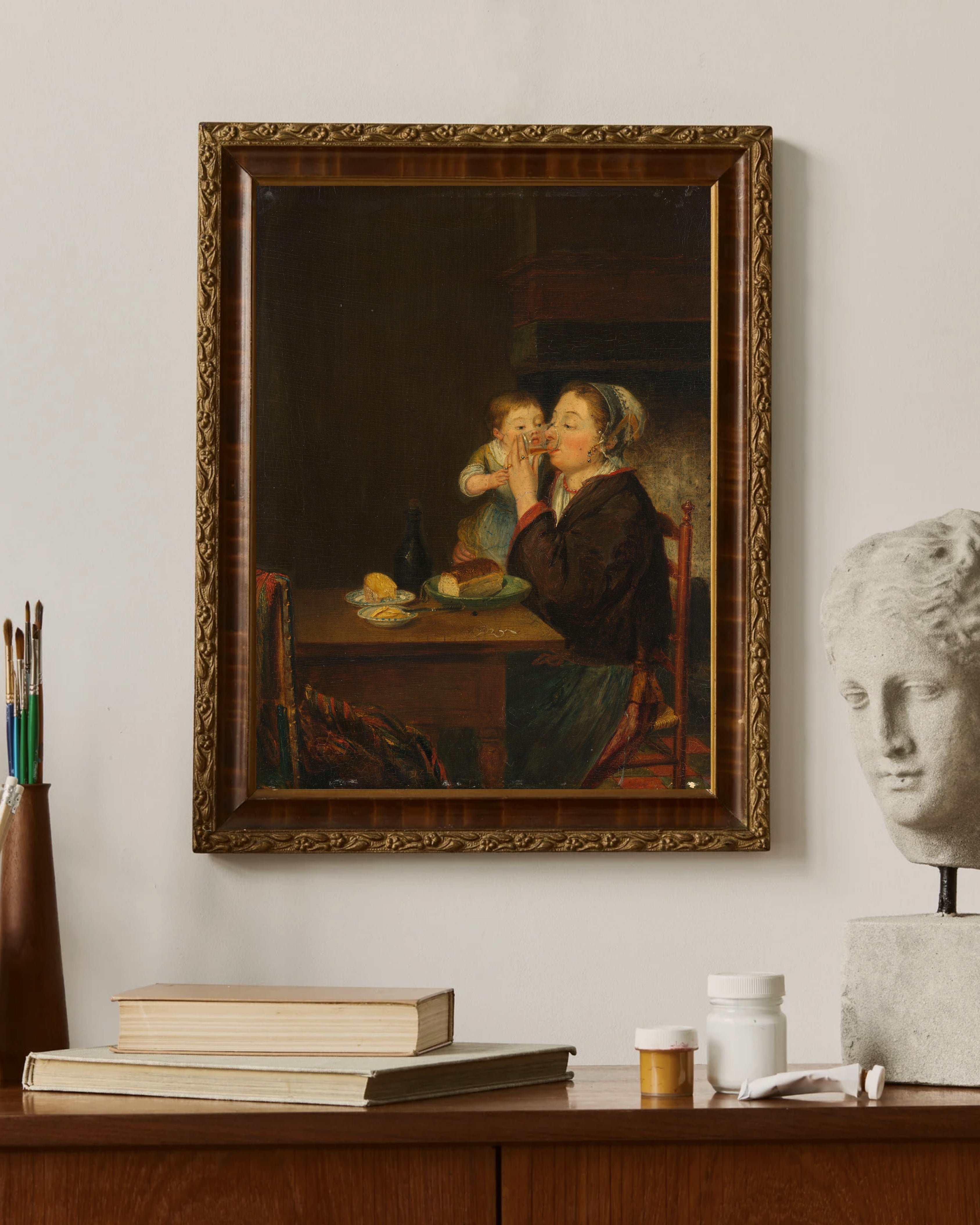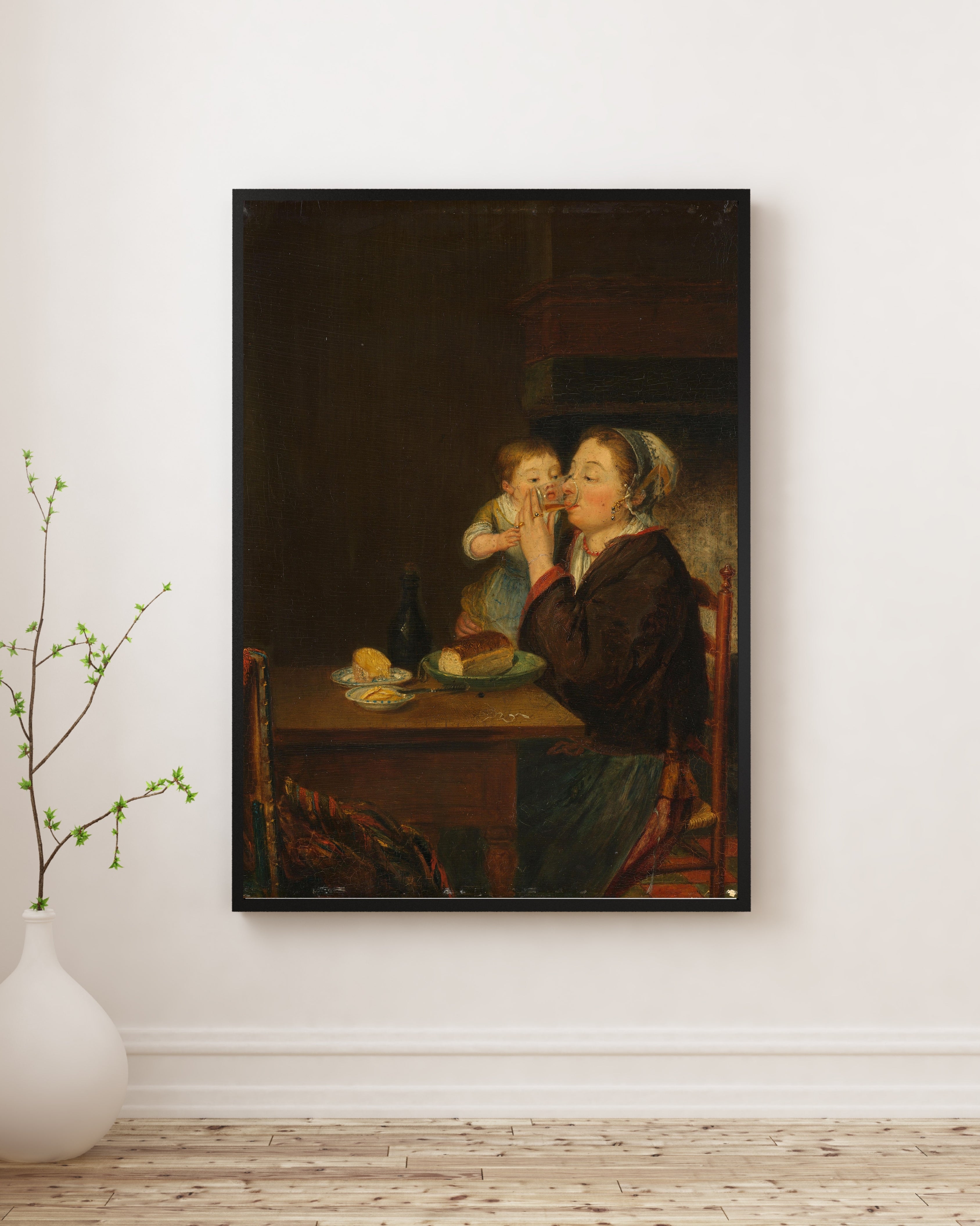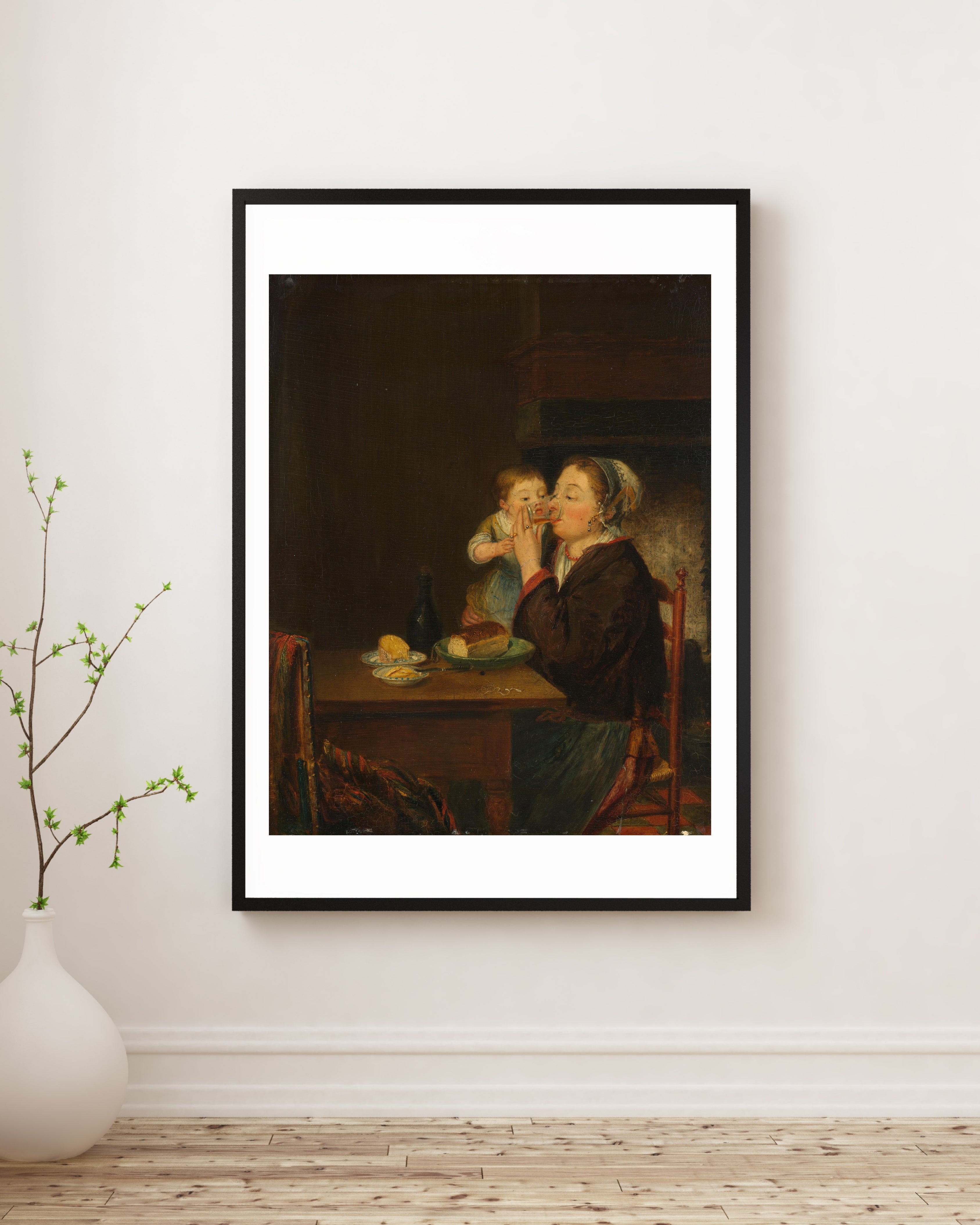 “Bir Anne ve Çocuğu / A Mother and her Child”, sanatçının en içten ve duygusal kompozisyonlarından biridir. Eserde genç bir anne, kucağındaki çocuğuna sevgi dolu bir ifadeyle bakarken betimlenmiştir. Anne ve çocuk arasındaki bu sade temas, izleyicide hem şefkat hem huzur hissi uyandırır.