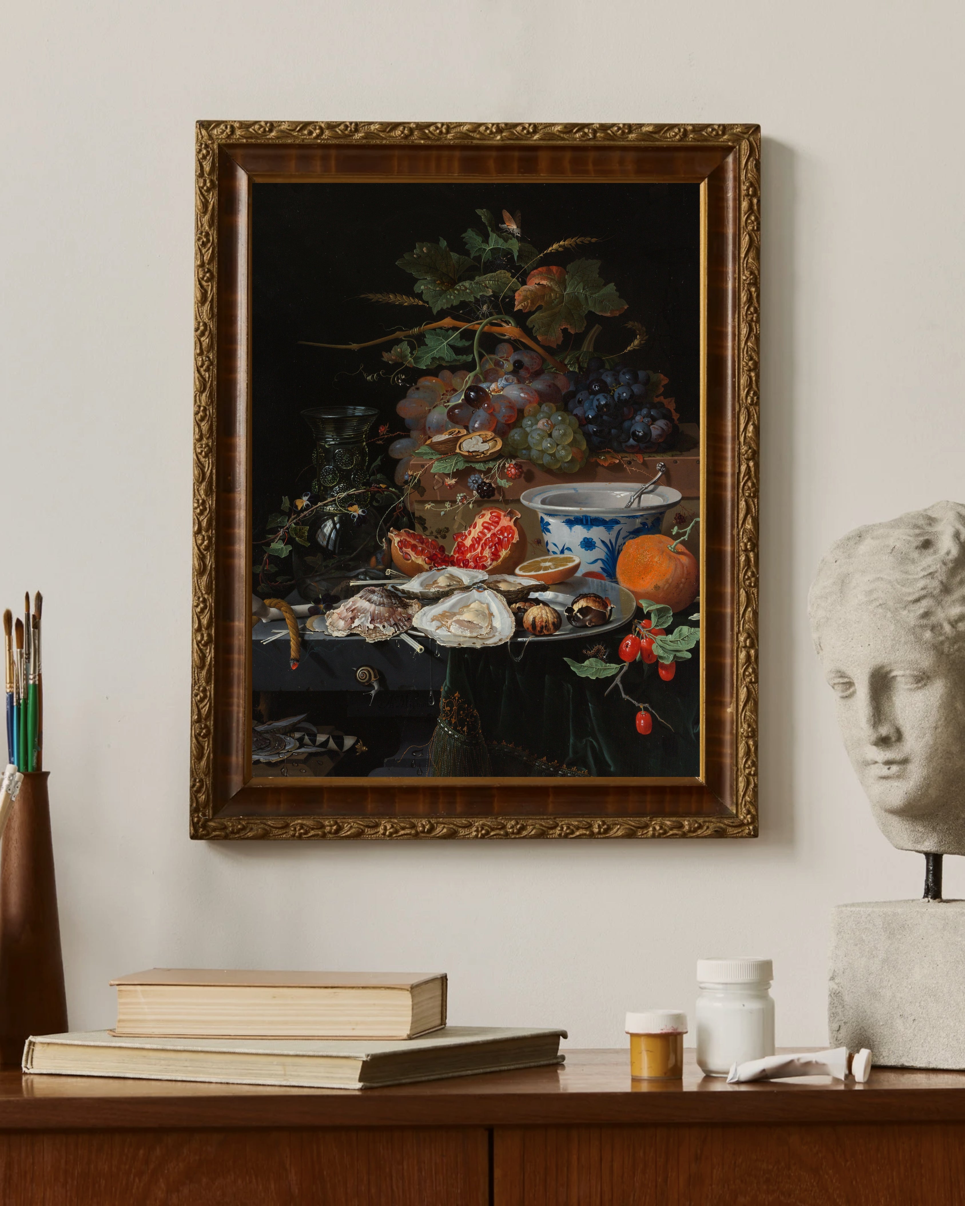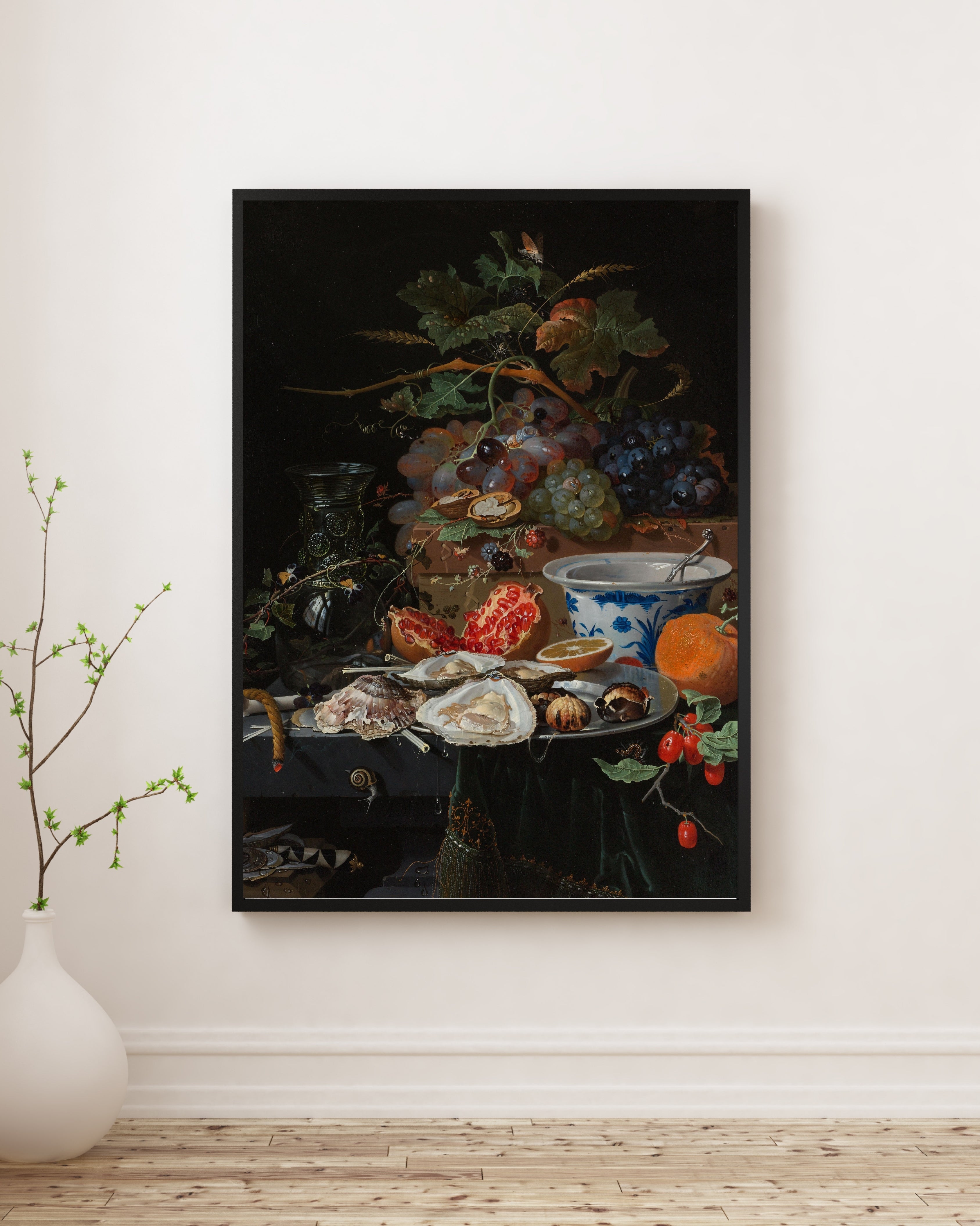 Abraham Mignon - Meyveler İstiridyeler ve Porselen Kâse ile Natürmort