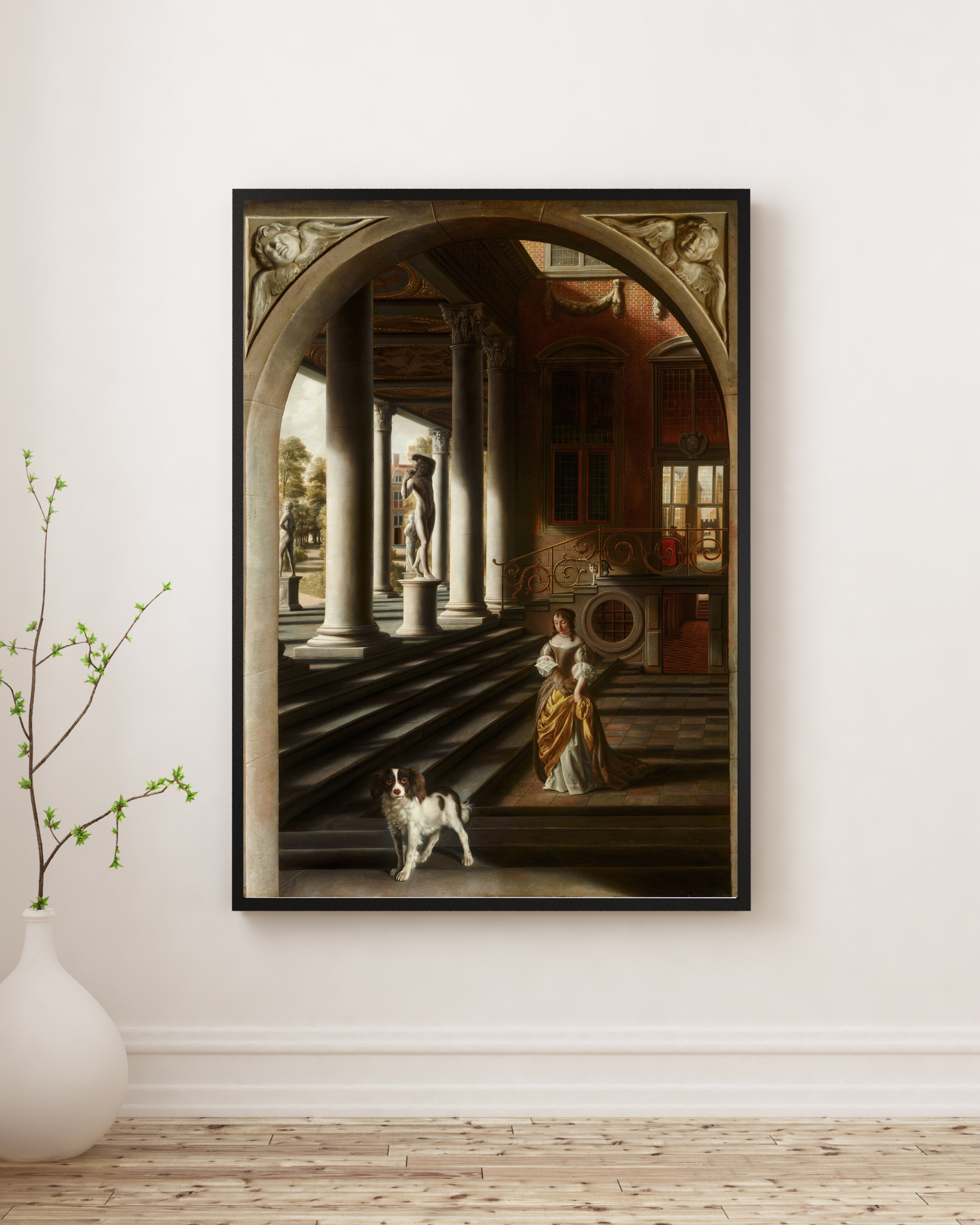 Bu sahne, yalnızca bir mimari deneme değil, aynı zamanda bekleyiş, özlem ve iletişimin sembolüdür. Kadının varlığı, boş koridorun sessizliğinde yankılanan bir duygusal titreşim yaratır. Işık, duvardan duvara hareket ederek izleyicinin gözünü sahnenin derinliğine çeker; bu da Hoogstraten’in “perspectiefkasten” (perspektif kutuları) tasarımlarındaki teatral etkiyi hatırlatır.