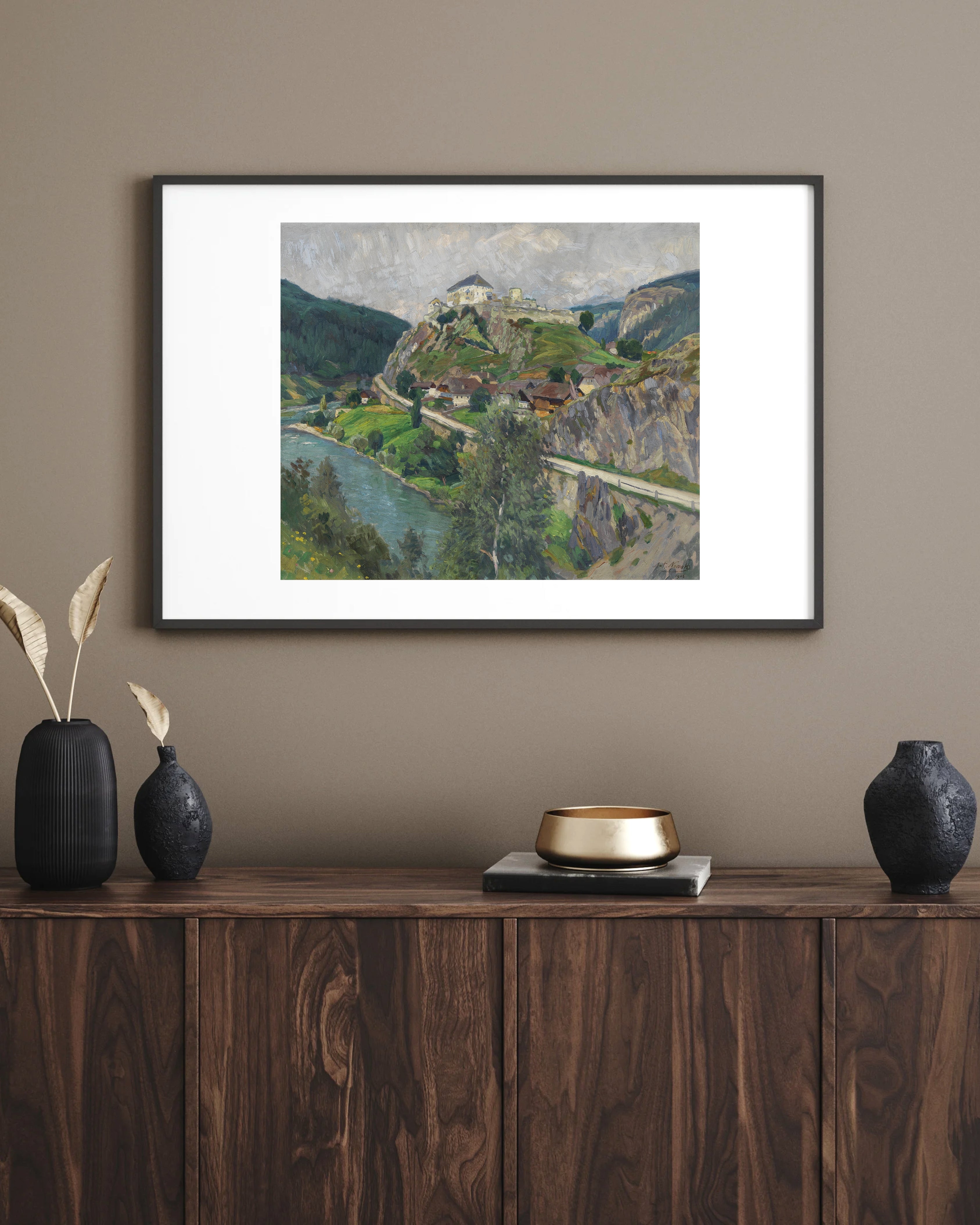 Eser ve paspartu, çerçeveyle uyumlu biçimde monte edilir. Arkasında yer alan askı aparatı sayesinde yatay veya dikey olarak kolayca asılabilir.