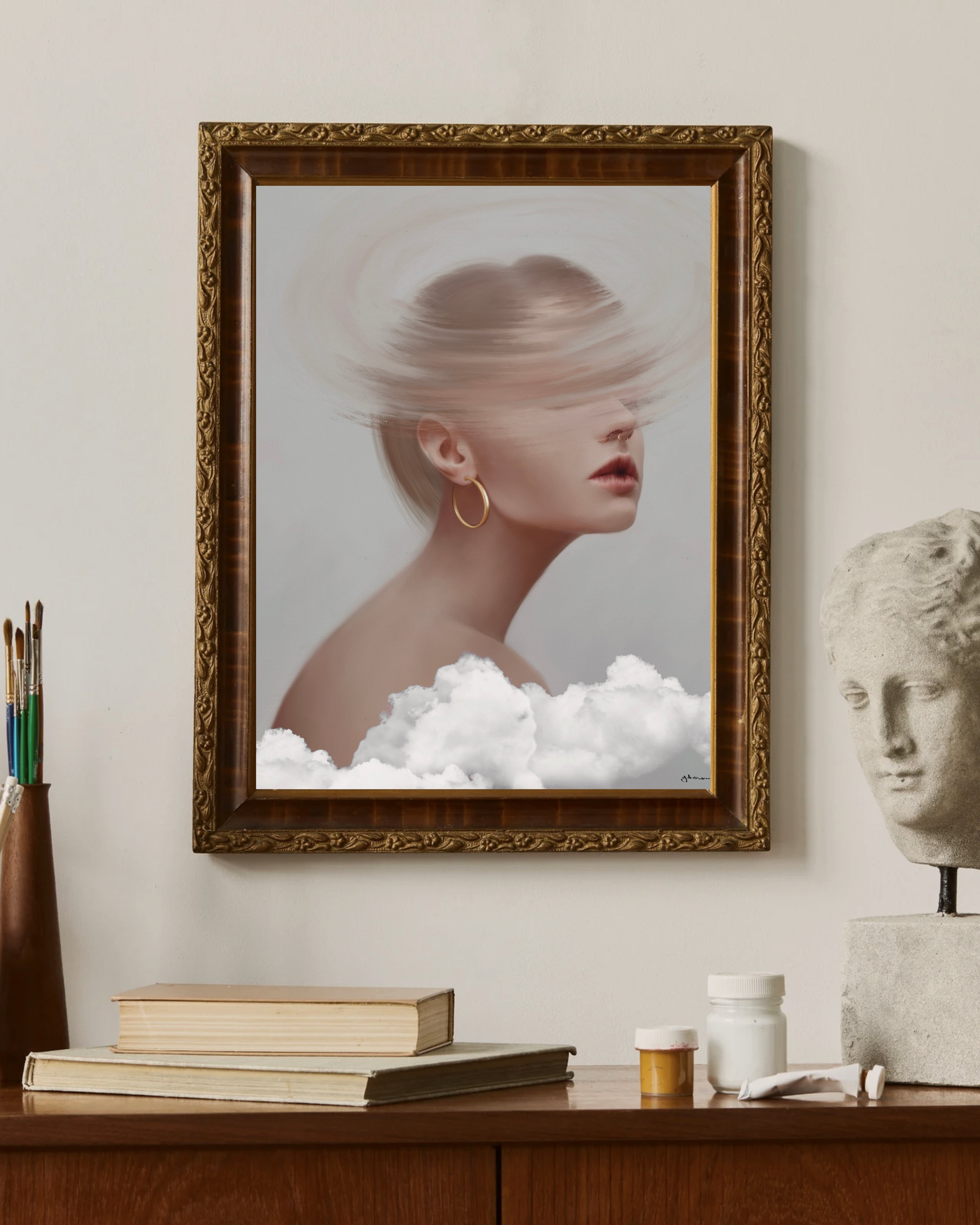 Ürün sayfasındaki mockup görselleri, çerçevenin mekândaki görünümünü göstermek içindir. Bu nedenle bazı mockuplarda eserler kırpılmış veya tam oturmuyormuş gibi görünebilir.