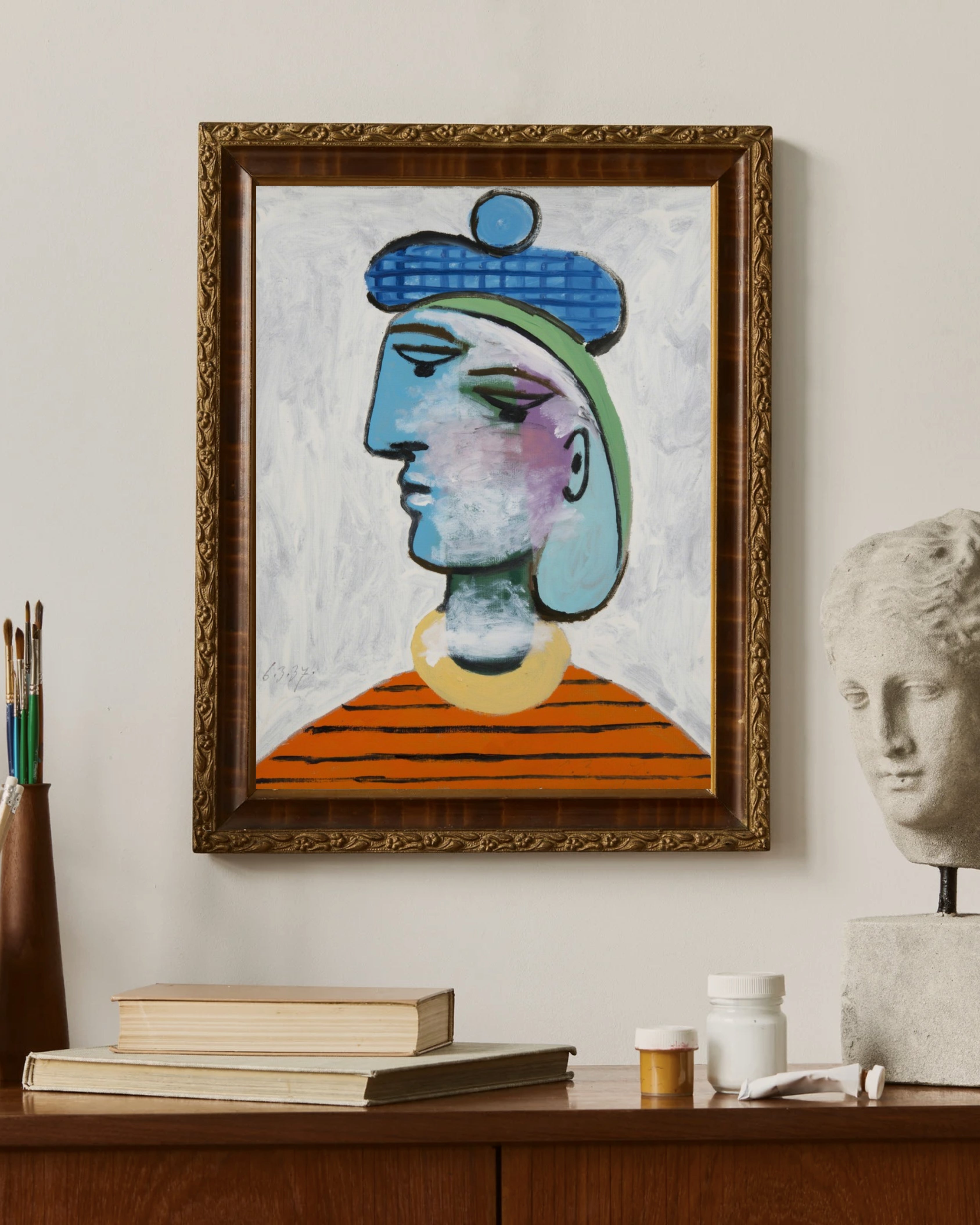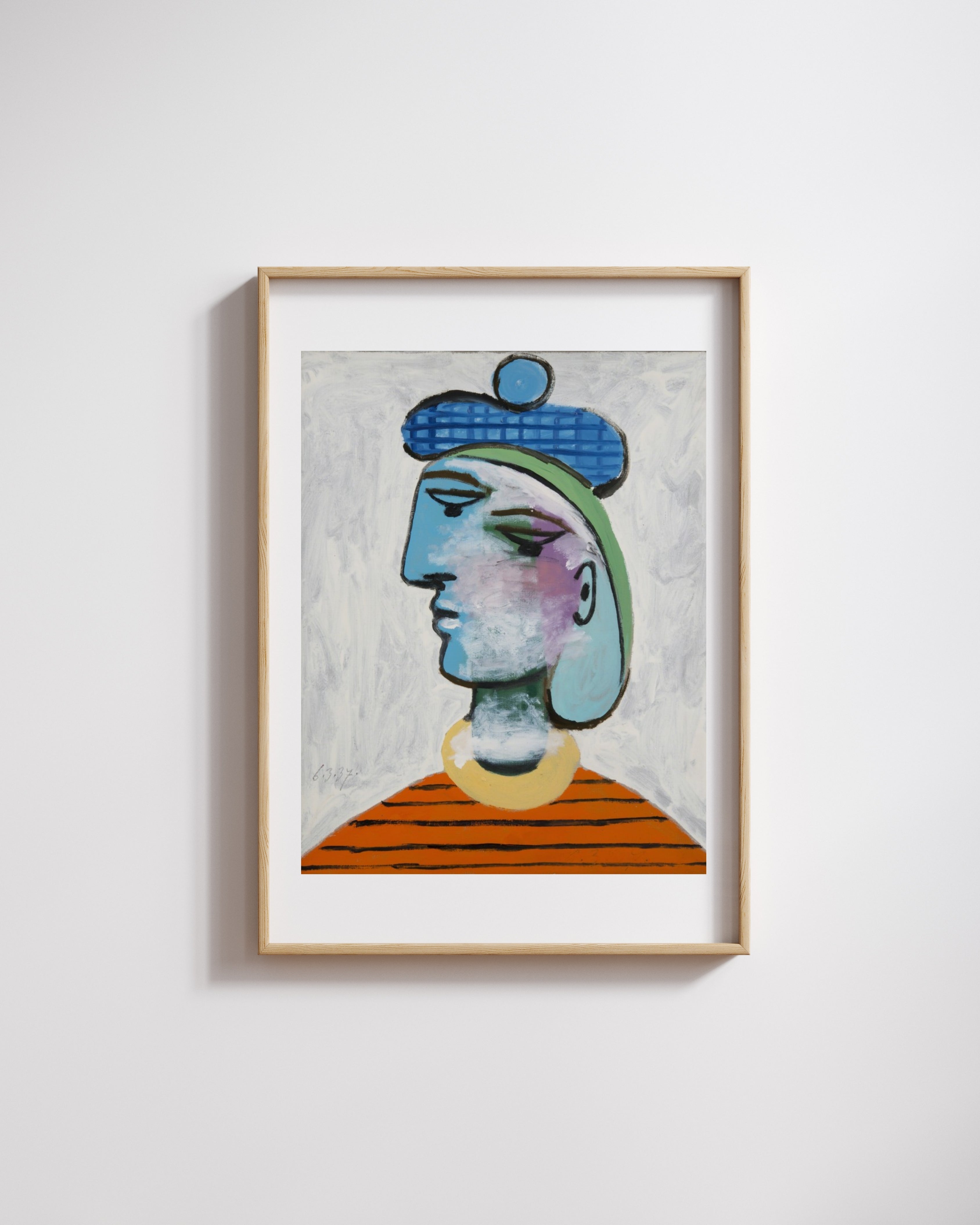 “Marie-Thérèse au béret bleu” is one of Picasso’s most captivating portraits, in which he transforms his passionate admiration for Marie-Thérèse into a modern, formal lyricism.