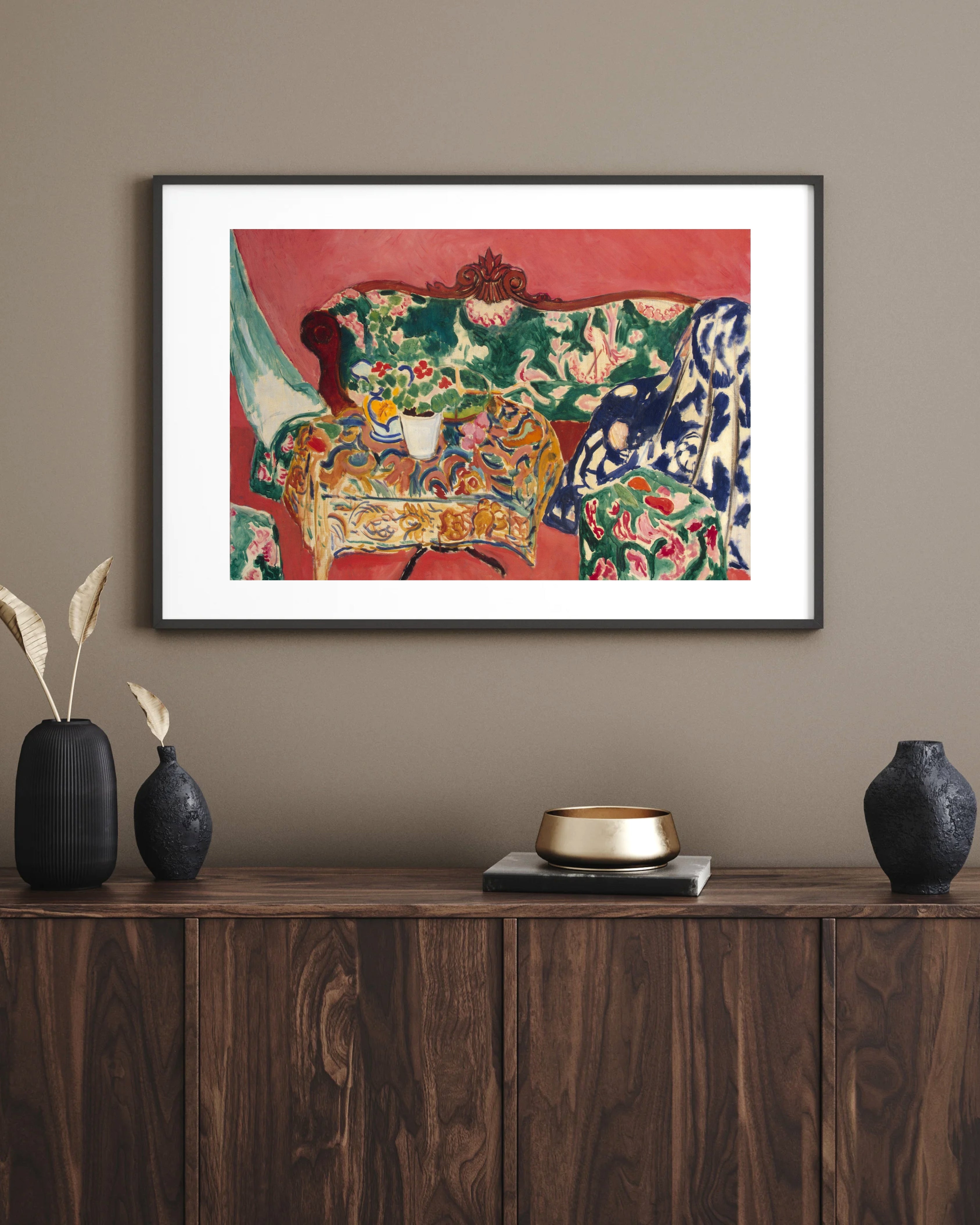 All frames are supplied with a mat ; the pH-neutral mat used protects the colours of your artwork and does not yellow over time.