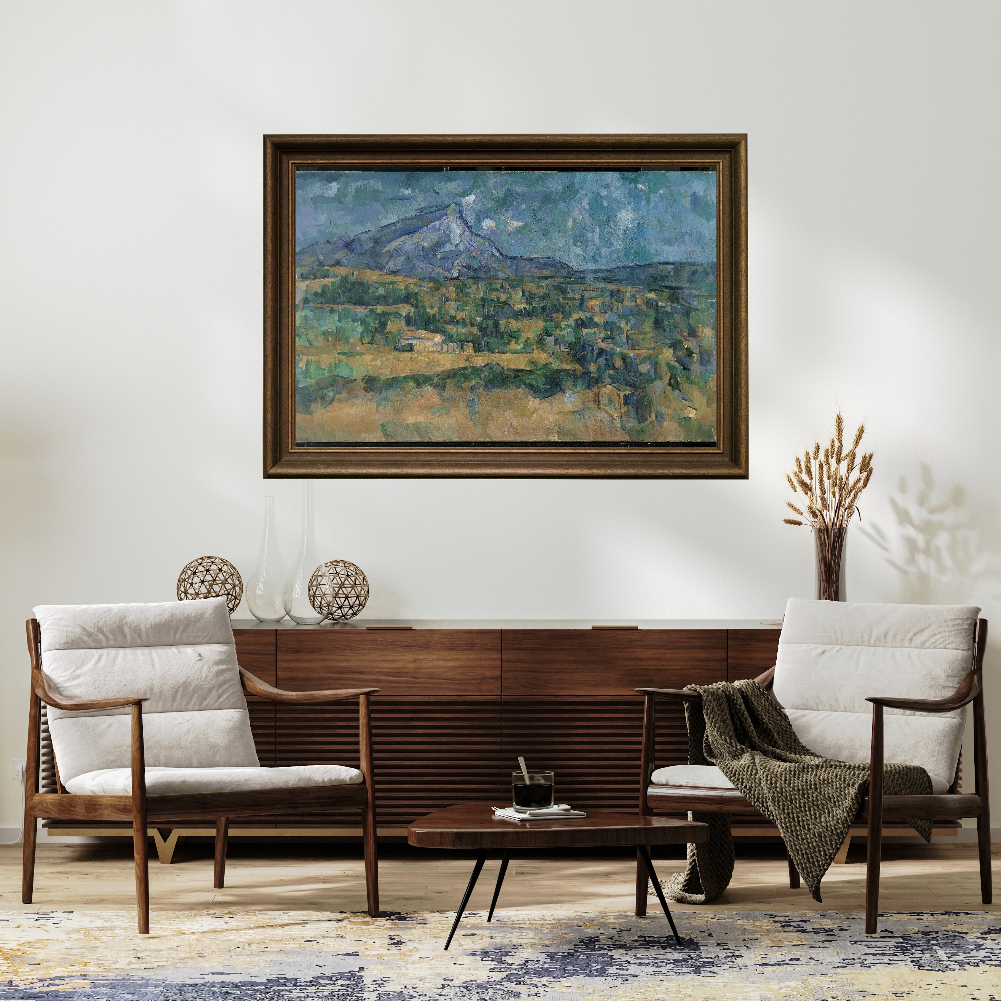 The painting " Mont Sainte-Victoire (Vue de Montbriand) " is one of the mountain landscapes the artist painted numerous times near Aix-en-Provence, where he lived in the Provence region. Cézanne treated this landscape like a laboratory throughout his life, examining it in different seasons and under different lighting conditions.