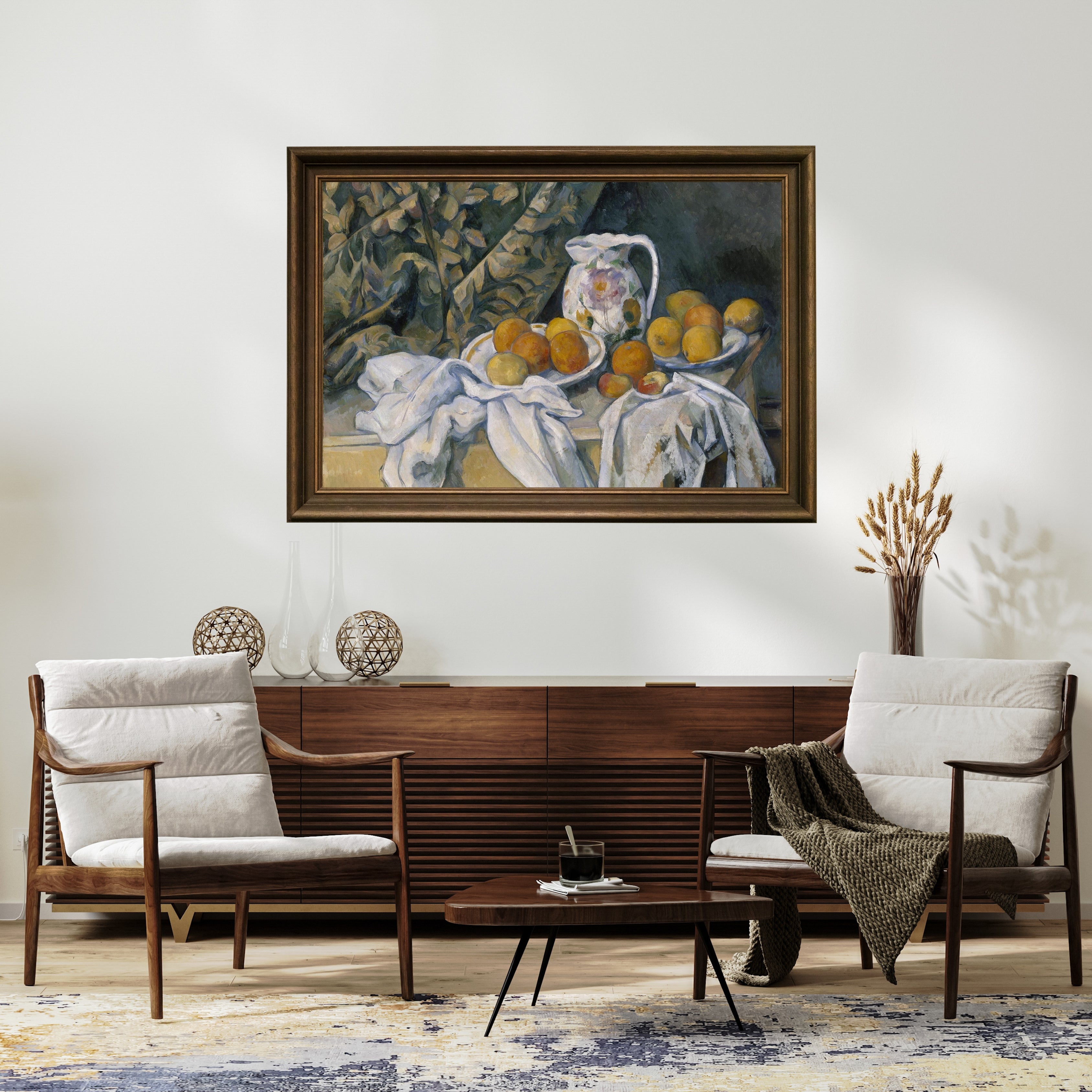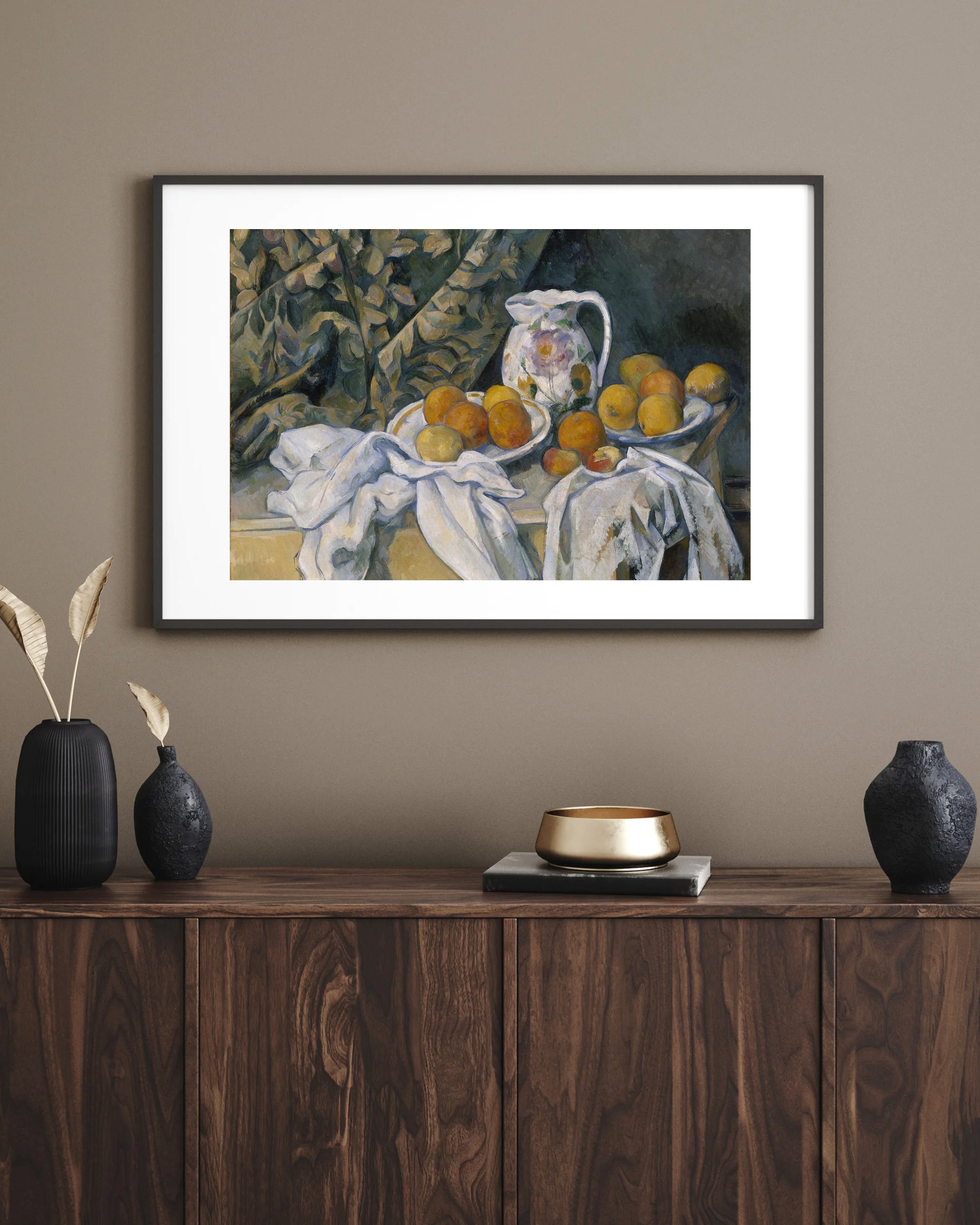 Paul Cézanne (1839–1906), one of the founding figures of modern painting, radically reinterpreted the relationship between volume, space, and color through his still lifes. Cézanne's still lifes are not so much depictions of objects as pictorial experiments in which he explores their structural logic, weight, and interconnected rhythm. "Still Life with a Curtain" is considered one of the most outstanding examples of his mastery in this field.